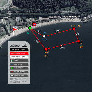 中距离和长距离运动员必须在每圈结束时出水,绕过位于沙滩上的TRITON浮标,然后重新入水开始下一圈。中距离运动员将在沙滩上完成一次绕圈跑,而长距离运动员需要完成两次。